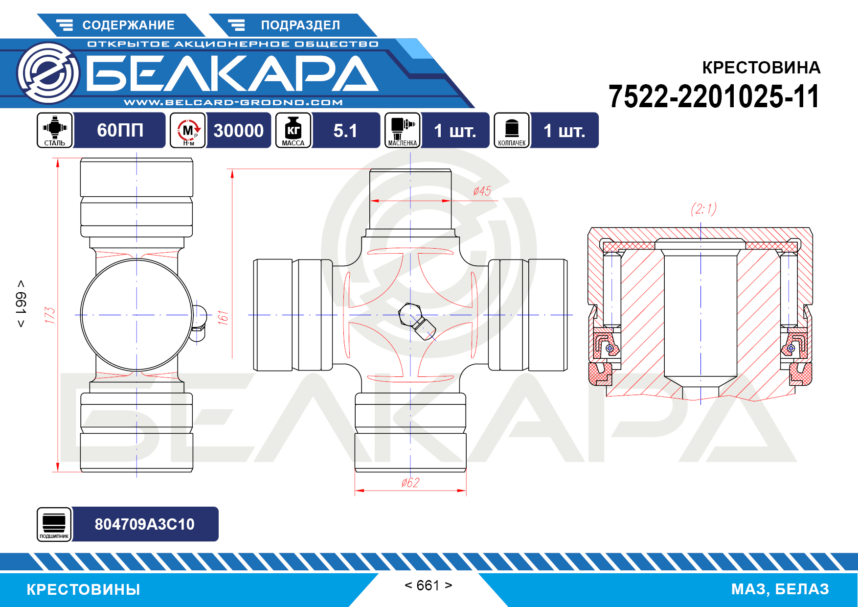 Крестовина карданного вала (173*62/161*45) 7522-2201025-11 производство БЕЛКАРД для МАЗ